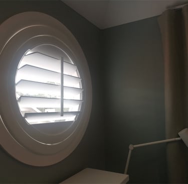 Just before Christmas 2022, Fred visited Henny’s home in Lindfield. Henny wanted advice for a round window in her youngest son’s room, unsure which window covering would work best. After Fred carefully explained the pros and cons of different options and Henny considered her own preferences, she decided a shutter would be the perfect choice.